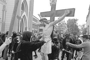 Marcha estudiantil termina con ataque a la Iglesia de la Gratitud Nacional