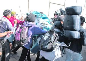 Cientos de personas de la caravana migrante tratan de ingresar a Estados Unidos por la fuerza