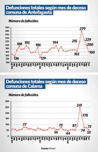 Antofagasta y Calama redujeron de forma significativa las cifras de defunciones totales