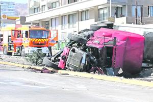 Camión chocó con 5 vehículos en bajada de Avda. S. Allende
