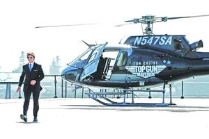 Tom Cruise llega al estreno de Top Gun 2 piloteando un helicóptero
