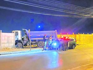 Camión con áridos impactó el cierre perimetral de unidad militar