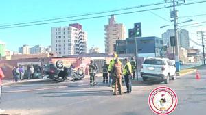 Colisión vehicular y posterior volcamiento dejó a tres lesionados