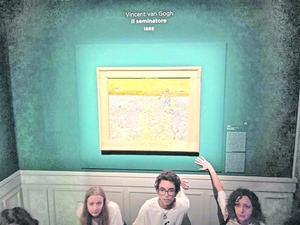 Vierten puré de verduras sobre cuadro "El sembrador" de Vincent van Gogh en Roma